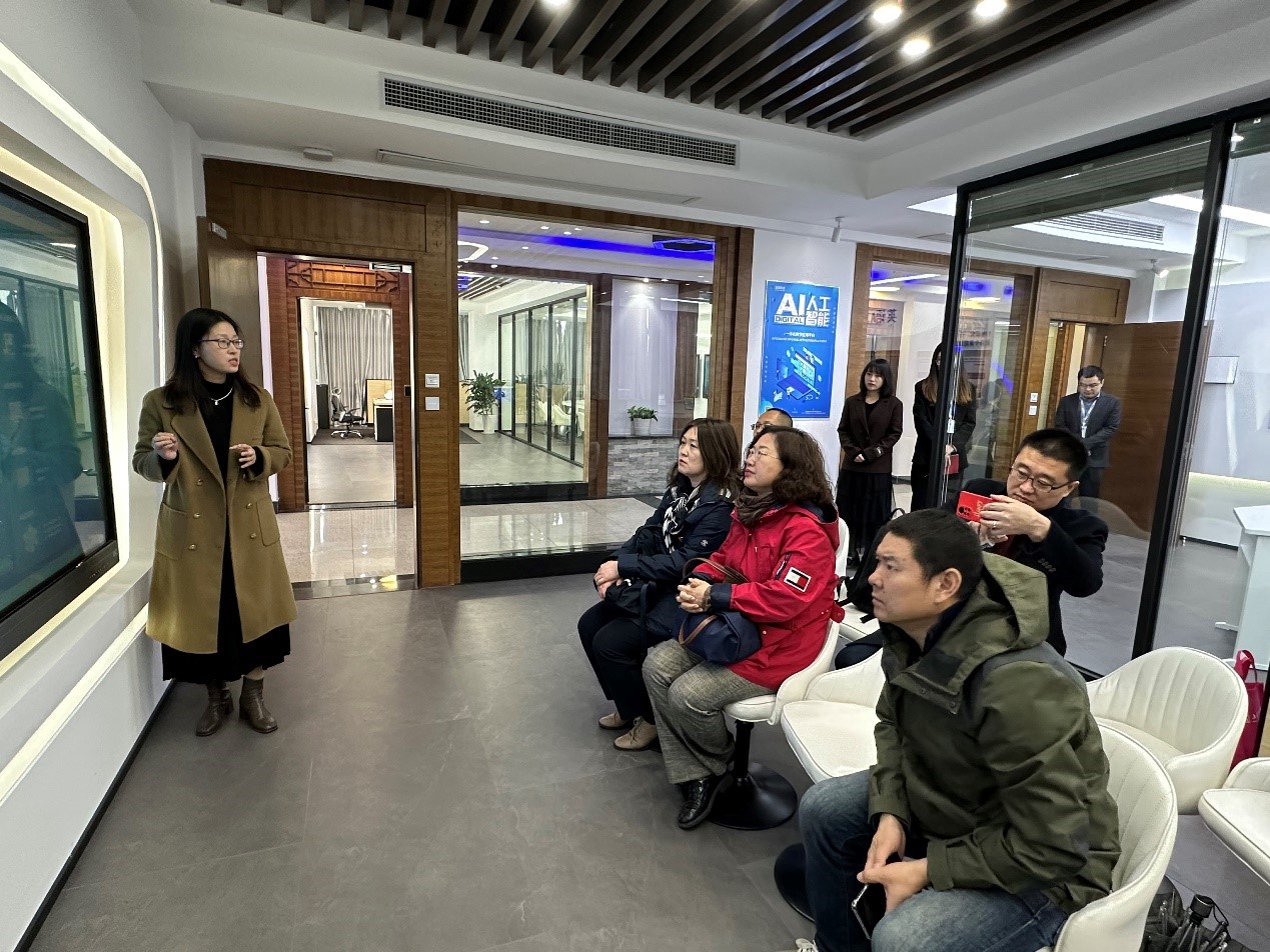 此行调研人员还走访了专注研发外语教学软件的浙江蓝鸽科技有限集团,学习了该集团最新发布的英语AI一体化教学应用平台和一体化考试辅助系统,为学院今后加强实验室建设,创新教学方式提供了有益的借鉴。