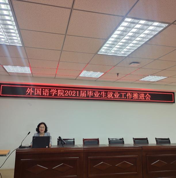 副院长李育石介绍了目前我院2021届毕业生考研、考取选调生、公务员等就业情况,分析了现阶段学院就业工作中存在的问题并对学院的后续毕业生就业工作任务进行了安排和部署。