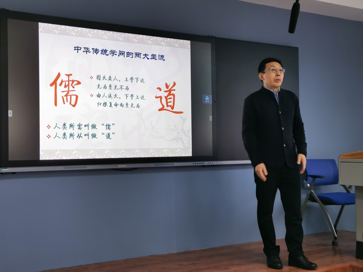 马智广博古通今、旁征博引,生动形象、言简意赅地向同学们阐释了中华传统文化的时代价值,即为天地立心,上学下达,确认生命的意义;为生民立命,承担自我唤醒的天命;为往圣继绝学,融合人类的智慧系统,下学上达;为万世开太平,实现天下为公的大同理想。