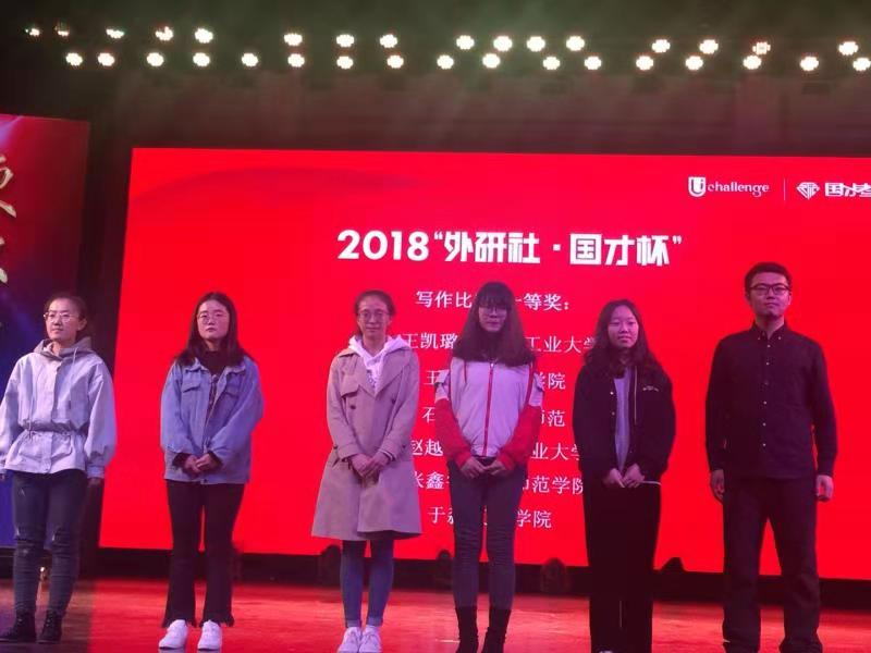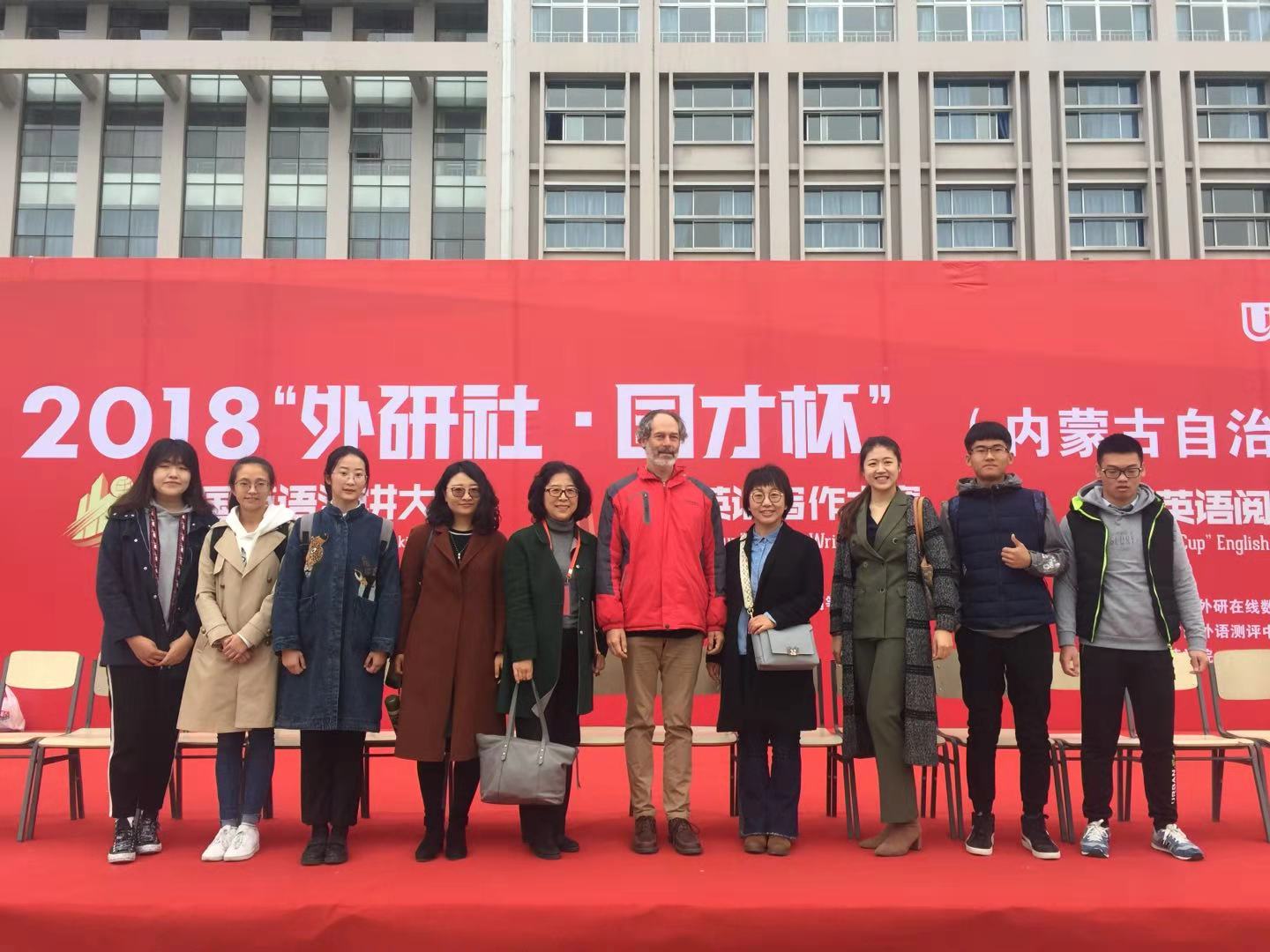 2018年11月3日,由包头师范学院承办的2018年“外研社•国才杯”全国英语演讲、写作、阅读大赛内蒙古赛区复赛圆满结束。yl8858永利集团派出了英语和德语专业六名选手,由张红教授领队,郭萌、田玉霞、孙磊老师为指导教师的队伍参加了比赛。2015级德语张慧敏、2016级英语耿捷、2016级英语盛悦铭、2017级英语王凯璐、2016级英语刘坤、2015级英语胡泽文分别参加了演讲、写作和阅读复赛,并全部取得佳绩。yl8858永利集团张红教授和外教Brian Spring受邀担任了演讲比赛评委和提问嘉宾。在演讲比赛中,2015级德语张慧敏同学以饱满的热情、流畅的口语和敏捷的反映,力压众多实力不俗的英语专业选手,获得英语演讲比赛二等奖。刚刚大二的王凯璐同学,以清晰的思路和流畅的文笔,斩获写作比赛一等奖。二位同学的指导教师田玉霞和郭萌老师分别获得相应奖项。