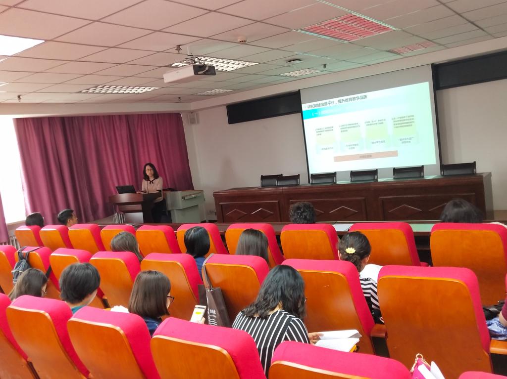 王慧晶传达了教育部高等学校大学外语教学指导委员会主办的“新时代英语能力测评体系建设与大学英语教育内涵式发展高端研讨会”的会议精神,着重强调现阶段大学英语教学模式与新教育技术手段的结合问题,突出大学英语教学强化学生跨文化交际能力的培养。
