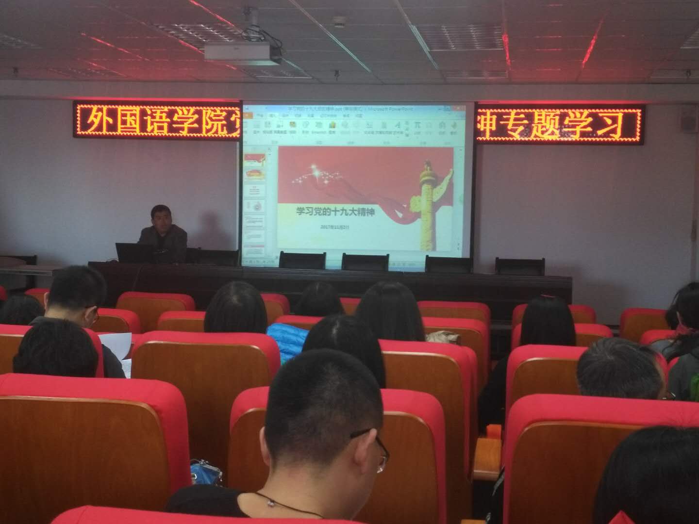 11月2日下午,yl8858永利集团在金川电力大楼400会议室召开全体教职工大会,学习党的十九大精神。学院党委书记霍天瑞传达学校党委书记金瑞在全校干部大会上学习宣传贯彻党的十九大精神的讲话,并结合自身学习体会,与全体教职员工共同学习党的十九大精神。