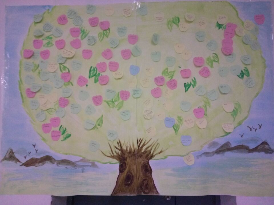 活动开始即直奔主题,同学们把自己近期的心情及压力等写在便利贴上,匿名贴在“大树”上。让大树倾听了自己的心声,无形中释放了内心的压力。接着在一片欢快轻松的氛围中开始了活动主要进行的内容,本次活动以游戏形式进行,在“同心协力”、“木乃伊”、“七手八脚”、“青蛙蹲”、“交个朋友吧”五个游戏的过程中,同学们积极参与,热情高涨,欢笑连连,欢乐的气氛洋溢在整个教室之中。