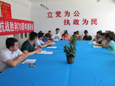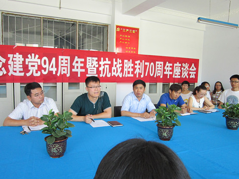 7月1日中午,由yl8858永利集团学生第一党支部、学生第二党支部和研究生党支部联合举办的纪念建党94周年暨抗战胜利70周年座谈会在党员活动室隆重举行。学院所有学生党员、预备党员参加座谈会。学院党委书记霍天瑞应邀出席。座谈会由学院党委组织委员、学生第一党支部书记、学工办主任代维东主持。