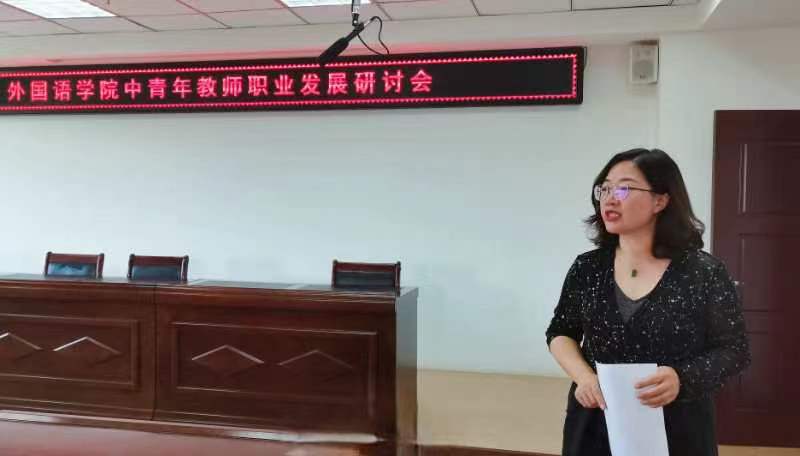 最后,董君副院长向大家介绍国内外进修和学历提升的要求及现状,鼓励教师综合考虑个人因素和学科特点,把握机遇,迎接挑战,通过深造提高自身知识水平和教学理论水平,更有针对性地进行教学、科研和实践,进而推动我校外语教学、科研改革与创新。