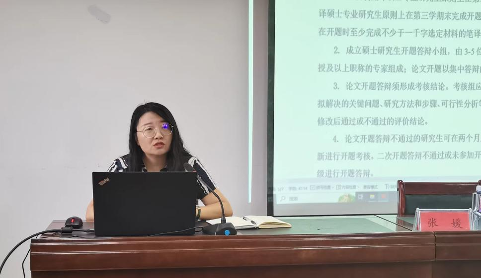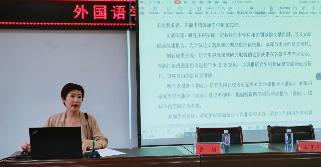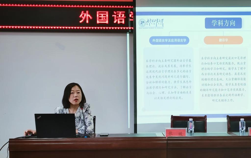 科研与学科办公室副主任刘月秋与MTI教育中心副主任田玉霞分别对外国语言文学专业及翻译专业的培养目标、科研创新与实践、导师情况、毕业要求等重要信息作出充分讲解。
