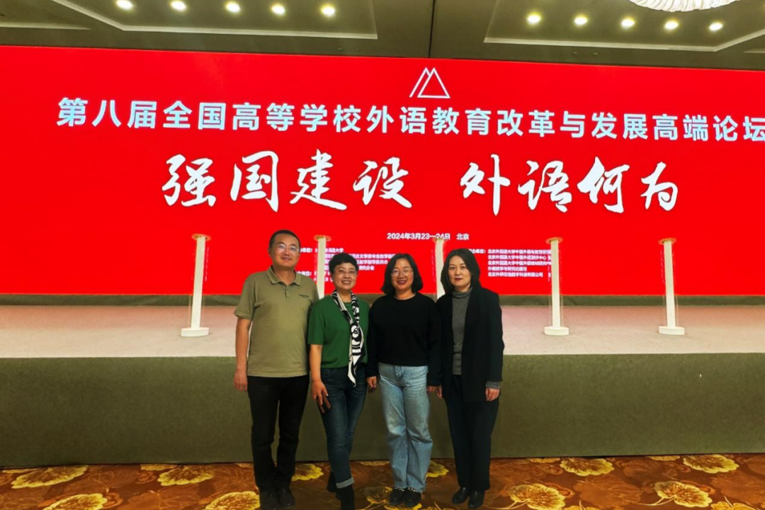 第八届全国高等学校外语教育改革与发展高端论坛于2024年3月23日-24日在北京召开。yl8858永利集团院长董君、副院长王智音、英语系系主任田忠山和公共外语教学部主任孙磊老师一行四人受邀参加了此次高端论坛。