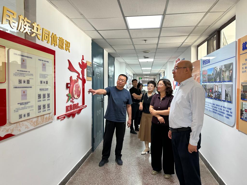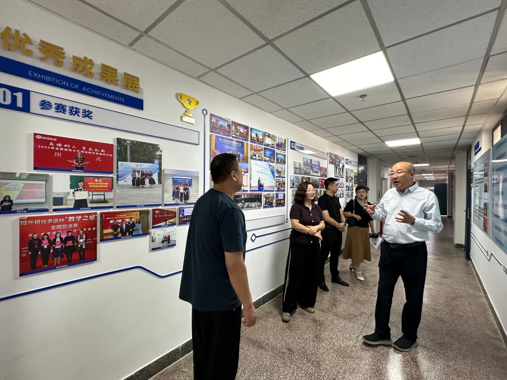 随后,他实地走访了学院新建成的文化走廊和硬件设施,了解学院发展建设需求和日常教学情况,认真欣赏了学院的教学科研成果展示以及铸牢中华民族共同体意识专栏等模块,勉励大家共同为学校、学院建设贡献力量,创造更好的育人环境、营造不断创新的学术氛围。