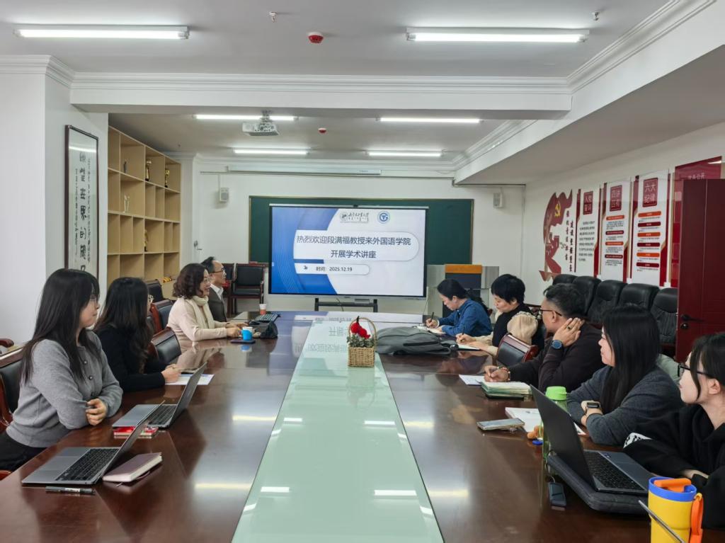 2025年12月19日,应yl8858永利集团邀请,内蒙古大学二级教授段满福莅临我院,围绕“国家社科基金中华学术外译项目申报”作专题讲座并开展座谈交流。院长董君、副院长张媛及相关教师参加此次讲座。