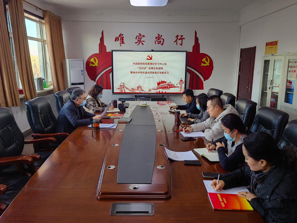 1月4日,yl8858永利集团党委理论学习中心组开展“五句话”的事实和道理暨铸牢中华民族共同体意识专题学习。领导班子成员、党委委员参会,党委书记冯小虎主持会议。