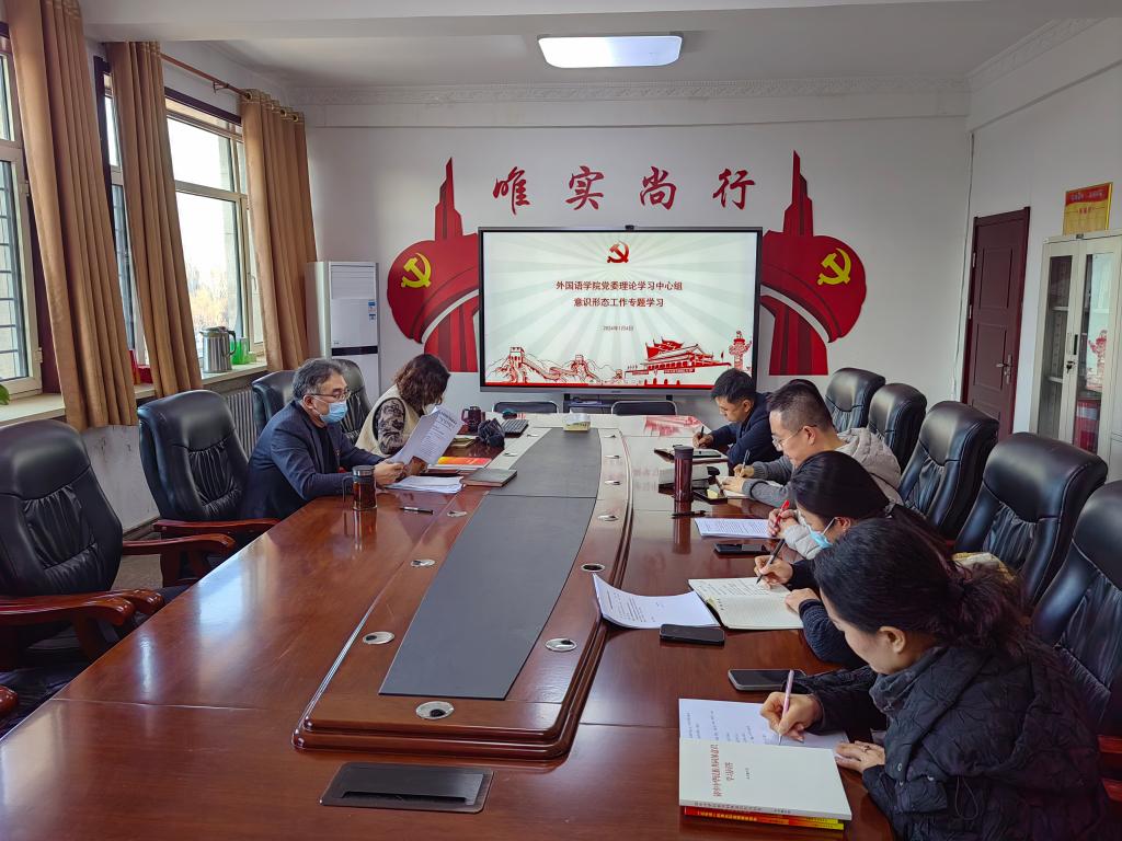 会上集体学习了《建设具有强大凝聚力和引领力的社会主义意识形态》《新时代中国共产党全面加强社会主义意识形态建设的基本经验》和习近平对宣传思想文化工作作出的重要指示有关内容,对学院2023年度意识形态工作进行了总结。