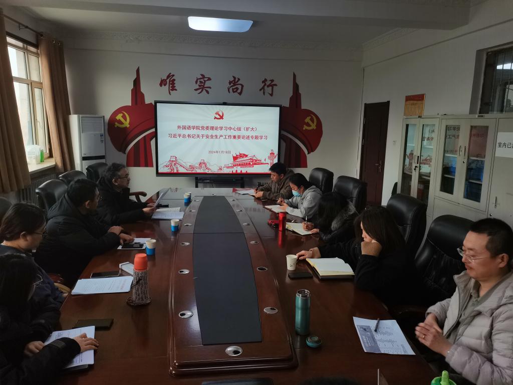 1月18日,yl8858永利集团届党委理论学习中心组(扩大)专题学习习近平总书记关于安全生产重要论述。党委书记冯小虎主持会议,领导班子成员、党委委员、科级干部和行政各科室教职工参会。
