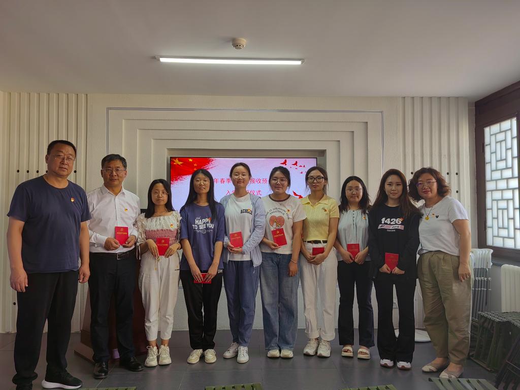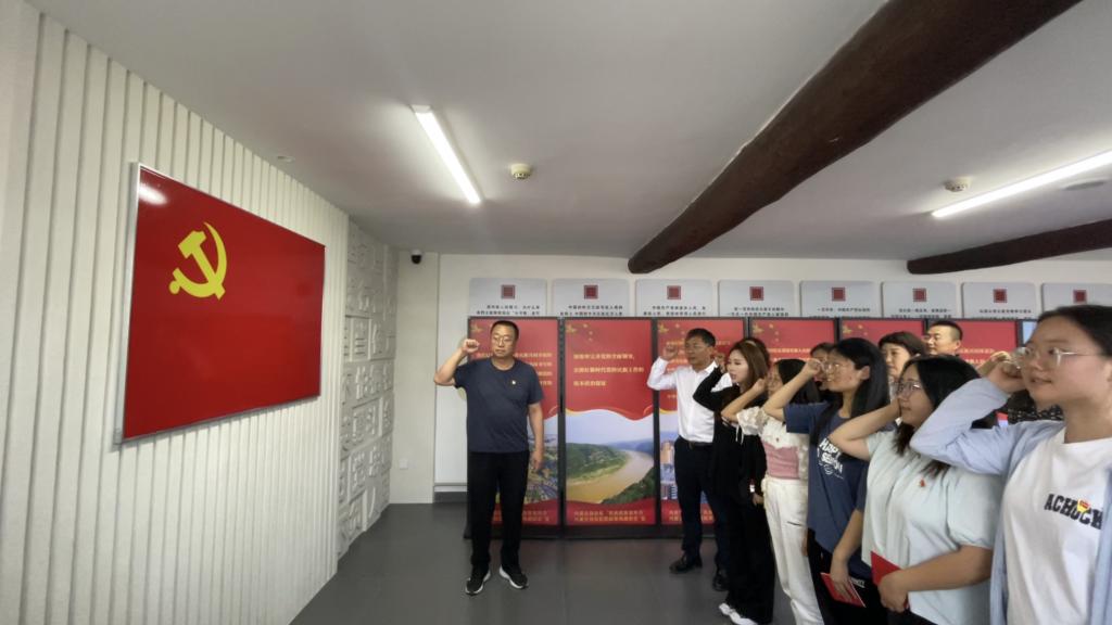 参观结束后,新党员进行入党宣誓。党委书记郭凌峰,党委副书记、院长董君为新党员配发《中国共产党章程》、佩戴党员党徽。新党员整齐列队举起右拳,面向鲜红的党旗庄严宣誓。新党员代表、外语系教师贾建新发言,表达了感党恩、听党话、跟党走,献身党的教育事业的决心。
