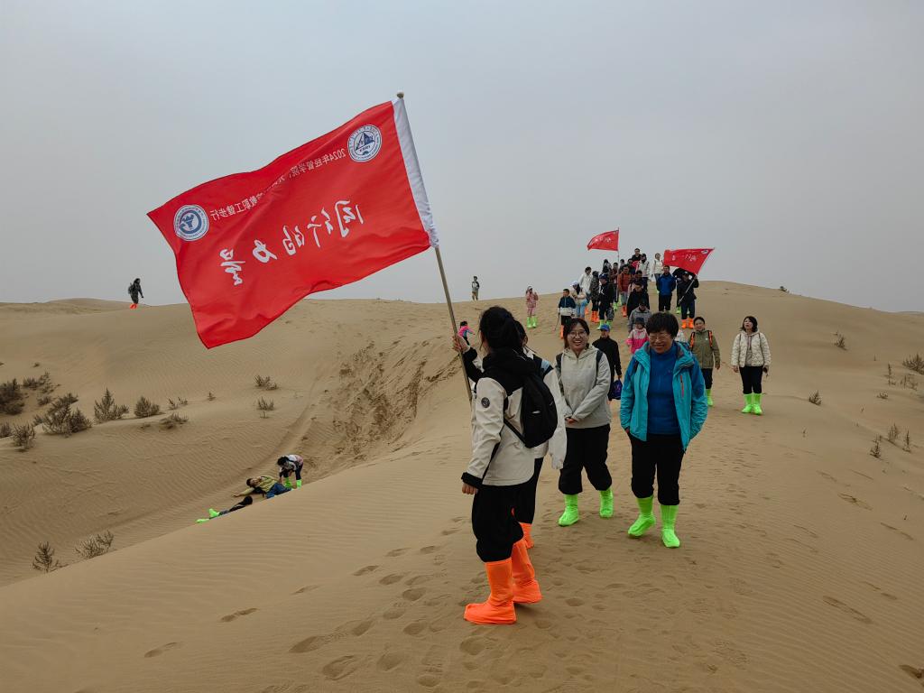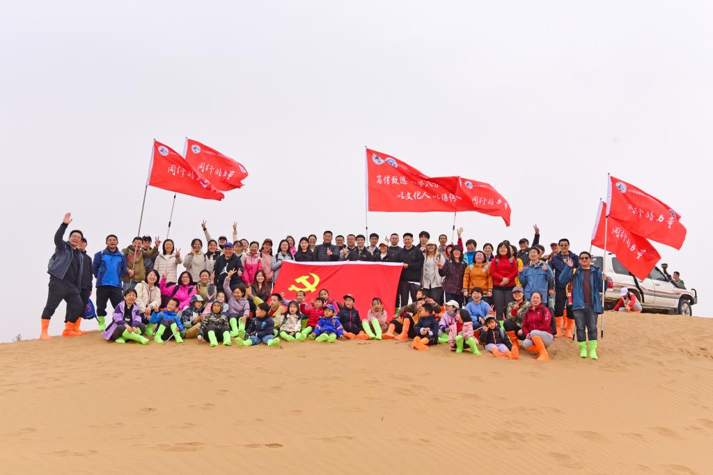 站在制高点远眺,跃然呈现的是大漠起翠屏、绿带锁黄龙的生动景象。在沙漠徒步穿越的赛道上,大家头顶骄阳,脚踏黄沙,一路相互鼓劲,携手前行,凭着顽强的意志和坚定的信念走完全程。通过徒步穿沙,广大党员得以切身感受一代代库布齐沙漠治沙人四十余年如一日艰苦奋斗、战天斗地,通过植树造林、引洪治沙、澄地造田实现了从“沙进人退”到“绿进沙退”的历史性转变。进而全面认识四十多年来内蒙古防沙治沙、“三北”工程建设和京津风沙源治理取得的巨大成就。