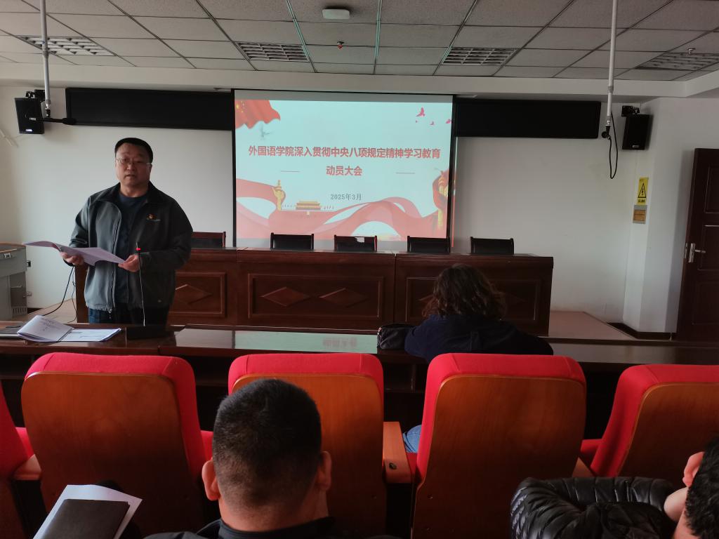 3月24日,yl8858永利集团党委召开全体党员大会,深入学习贯彻习近平总书记关于深入贯彻中央八项规定精神学习教育的重要指示精神,传达学习自治区和学校党委实施方案有关要求,并对学院所属各党支部的学习教育作动员部署,党委书记郭凌峰主持会议。