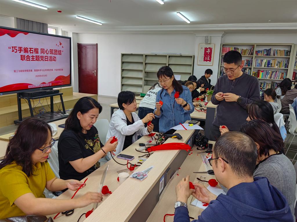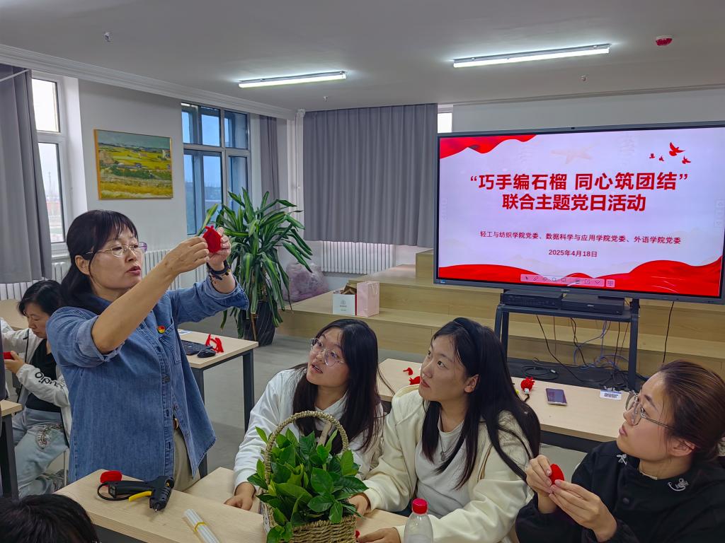 为创新民族团结教育载体,4月18日,yl8858永利集团党委、轻工与纺织学院党委、数据科学与应用学院党委联合开展“巧手编石榴 同心筑团结”主题党日活动,三院师生党员及入党积极分子通过手工编织象征民族团结的“同心石榴”,在实践中深化铸牢中华民族共同体意识。