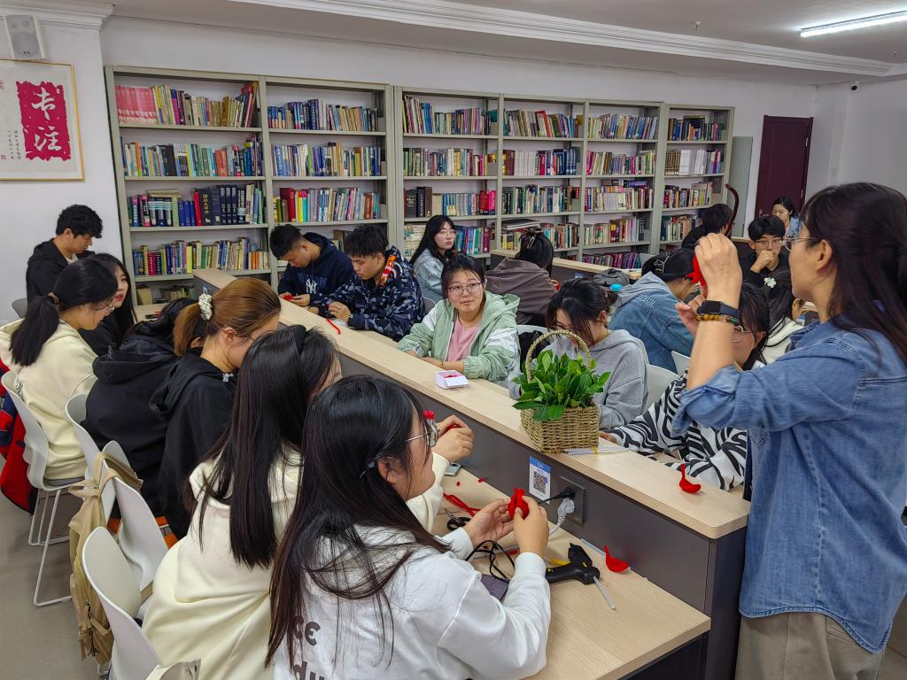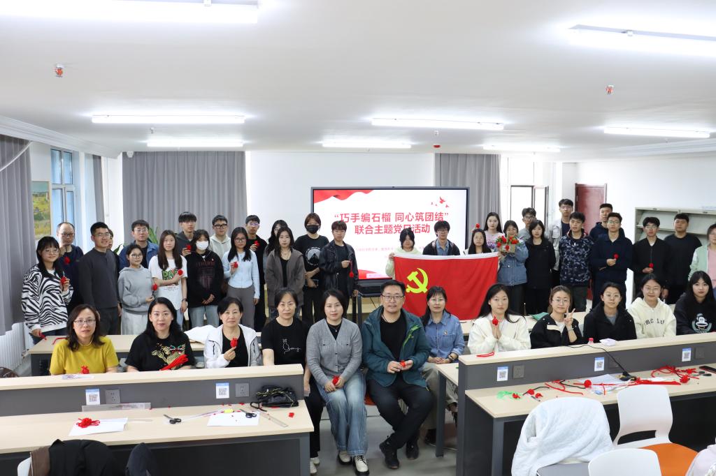 活动现场,师生用红色扭扭棒精心制作石榴造型,在指尖艺术创作中感悟“各民族像石榴籽一样紧紧抱在一起”的深刻内涵。不同学科背景的师生在协作中增进交流,既提升了基层党组织的凝聚力,也搭建了跨学科融合发展的新平台。