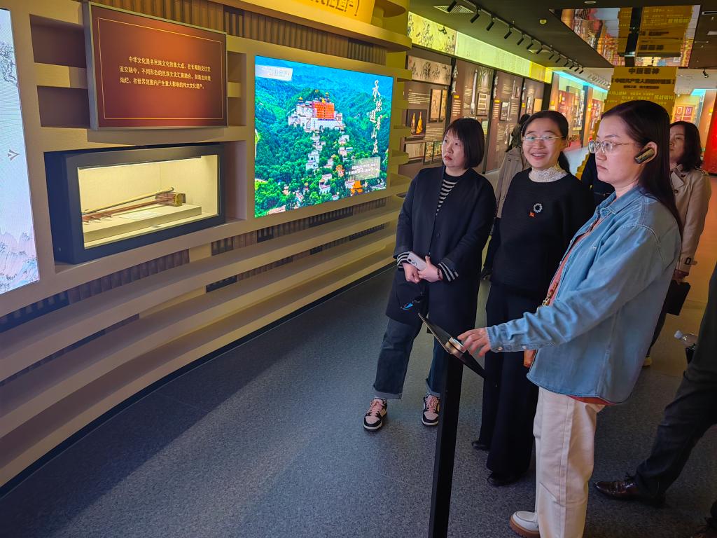 呼和浩特民族学院铸牢中华民族共同体意识教育馆以“四个共同”的中华民族历史观为主线,以各民族交融汇聚的中华民族共同体的起源、形成和发展为脉络,通过历史文献、影像资料、数字投影、艺术浮雕、实物展示和沉浸式媒体技术等多种形式全面阐释中华民族的孕育与起源,讲述中华民族从自在走向自觉、走向伟大复兴,立体呈现内蒙古各族人民长期以来守望相助、团结奋斗的生动画卷。