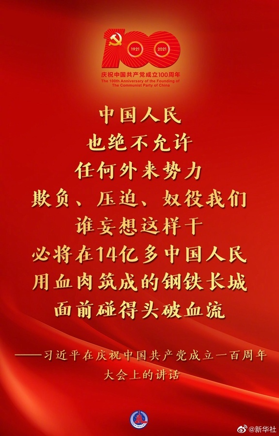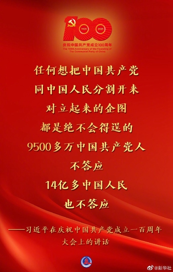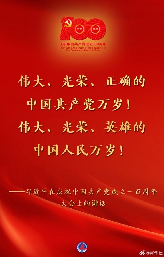 习近平:在庆祝中国共产党成立100周年大会上的讲话