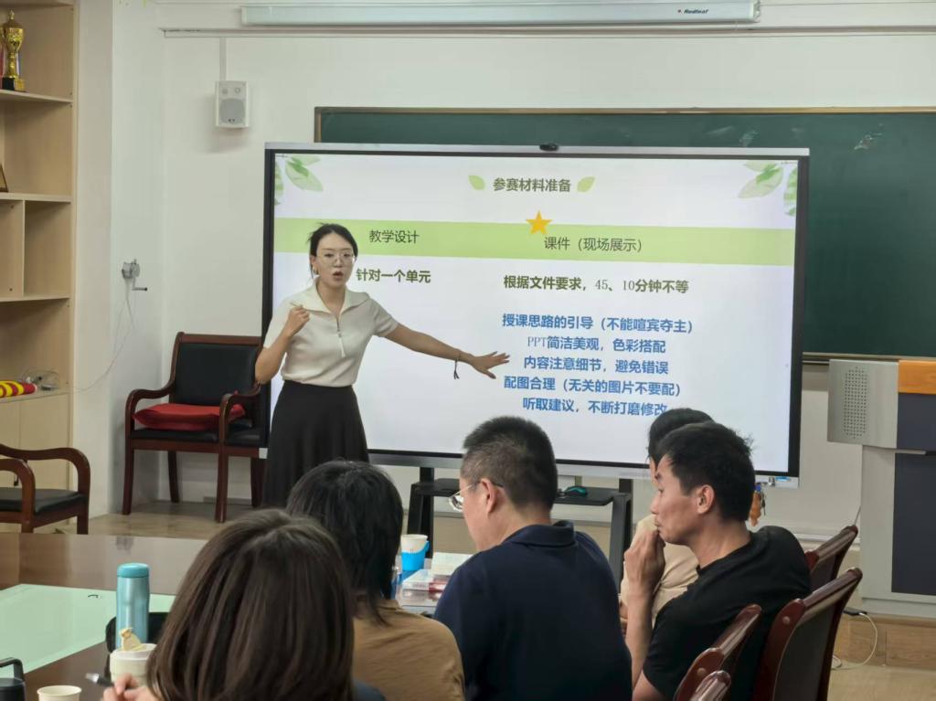 交流分享环节亮点频出。公共外语教学部赵欣老师分享国家级一流课程《英语基础语音》建设心得,从建设历程与核心注意事项展开,强调围绕学生需求创新教学手段、注重团队协作与资源迭代,为一流课程建设提供方法。外语系孟圆老师分享外研社“教学之星”大赛心得,回顾备赛与交流,分享获全国半决赛一等奖的喜讯,展现青年教师风貌,体现 “以赛促教” 的作用,引发现场共鸣。