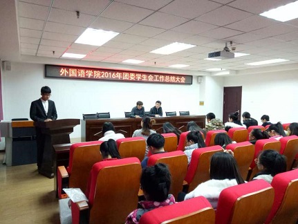 达布希拉图老师对本学年我院团委在学生科技活动、思想政治教育、社会实践和志愿服务活动、校园文体活动等方面的工作进行了总结。学生会主席团成员也分别对本学年各部门工作情况进行总结,并宣读《2016——2017学年学生会评选优秀部门、优秀部长、优秀干事评选条例》。