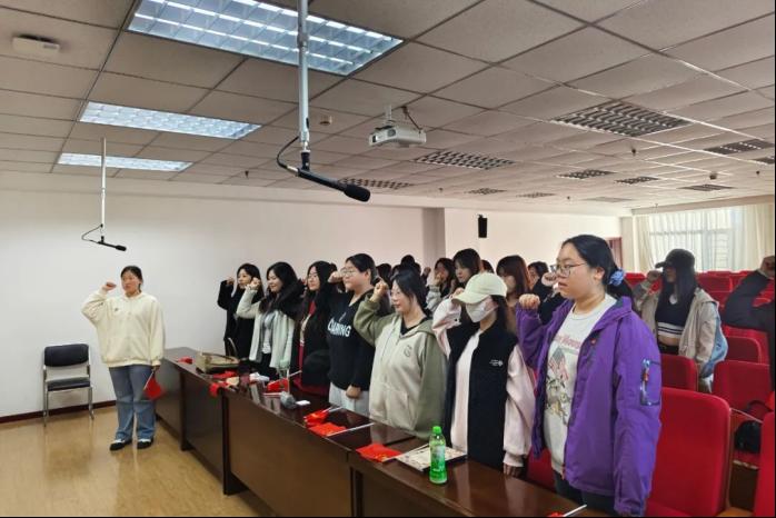 最后,全体团员面向团旗重温入团誓词,铿锵有力的实验提醒着团员青年不忘入团初心,牢记奋斗使命。