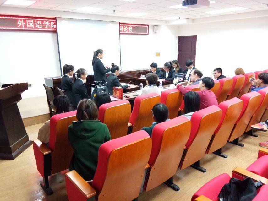 为了加强学生对英语的重视和口才的培养,yl8858永利集团于10月31日在金川校区主楼400举办了英文辩论赛决赛。yl8858永利集团外教Bruce、陈亚杰老师任此次辩论赛评委。共100余名同学观看了此次比赛。