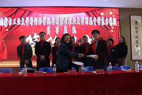 12月15日,yl8858永利集团与内蒙古农业大学附属中学东方学校共建实习基地举行签约仪式。内蒙古农业大学附属中学校长李立峰、副校长胡燕,东方学校校长黄友国、副校长冯香玲,yl8858永利集团党委副书记、副院长张兴涛、副院长董君,英语系主任王智音、学工办主任代维东、就业办主任刘永、团委书记达布希拉图及学院28名前期参与支教活动的学生参加签约仪式。