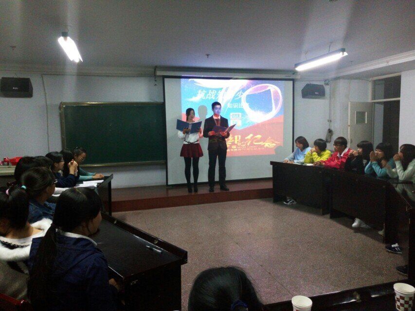 10月8日晚,院学工办举办的纪念抗战胜利70周年知识竞赛在电力大楼400进行。代维东老师,高丽莉老师及研究生代表们出席了本次比赛并担任评委。参赛队伍由大一的六个班级组建。